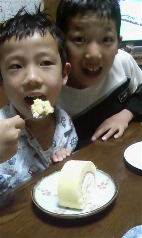 プレゼントしてもらったケーキをみんなで食べた☆